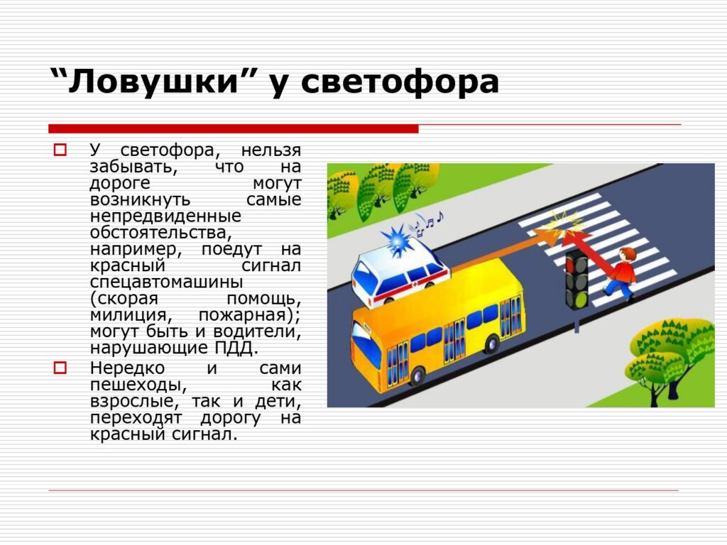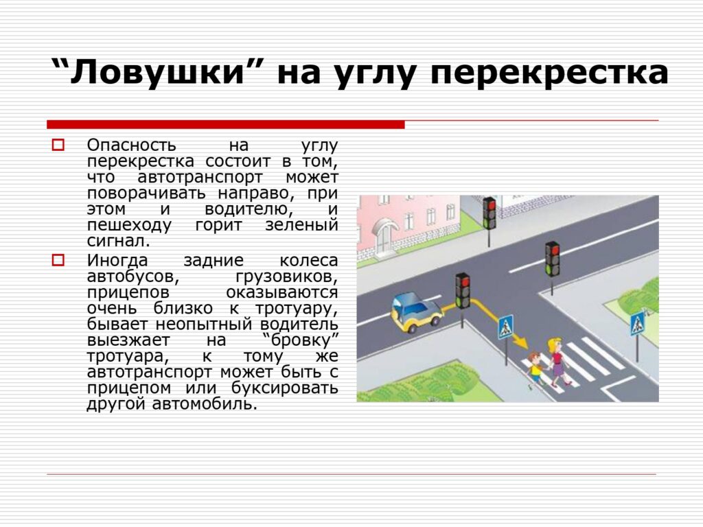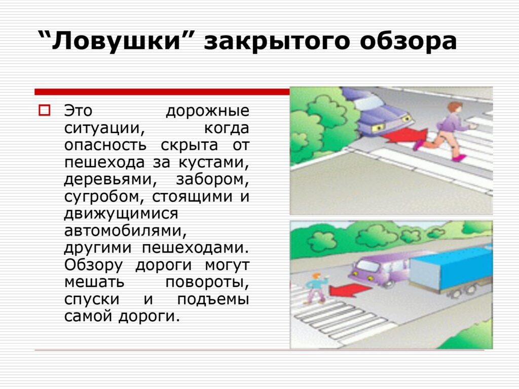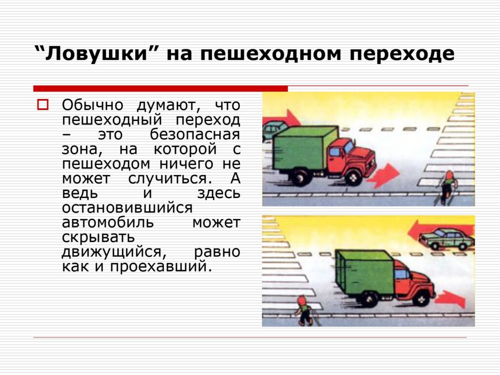 Не выбегайте на дорогу вне зоны пешеходного перехода, в этом месте водитель не ожидает пешеходов и не сможет мгновенно остановить автомобиль.