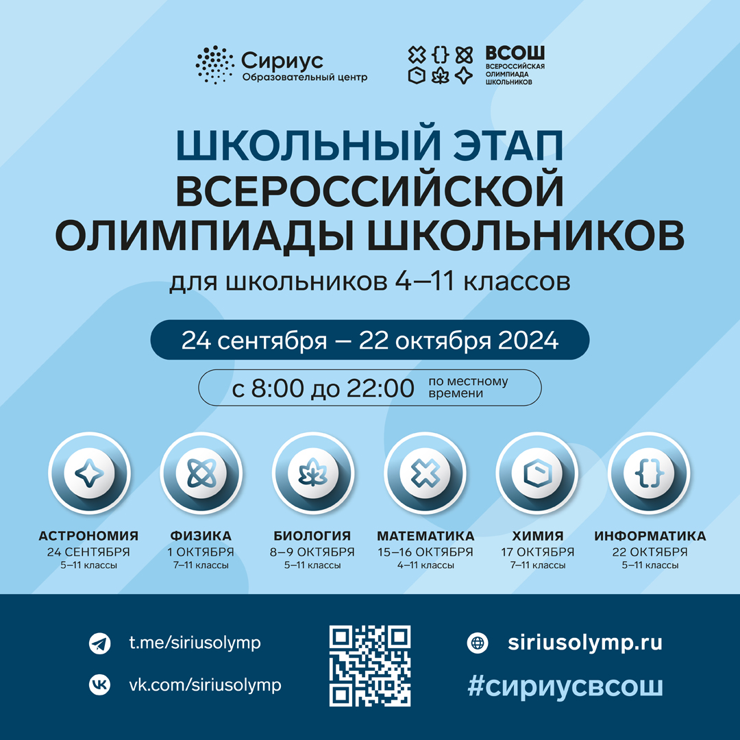 Стартовал новый цикл всероссийской олимпиады школьников 2024/25 учебного года. 24 сентября (вторник) состоится первая олимпиада по АСТРОНОМИИ для учащихся 5-11 классов на на технологической платформе «Сириус.Курсы».