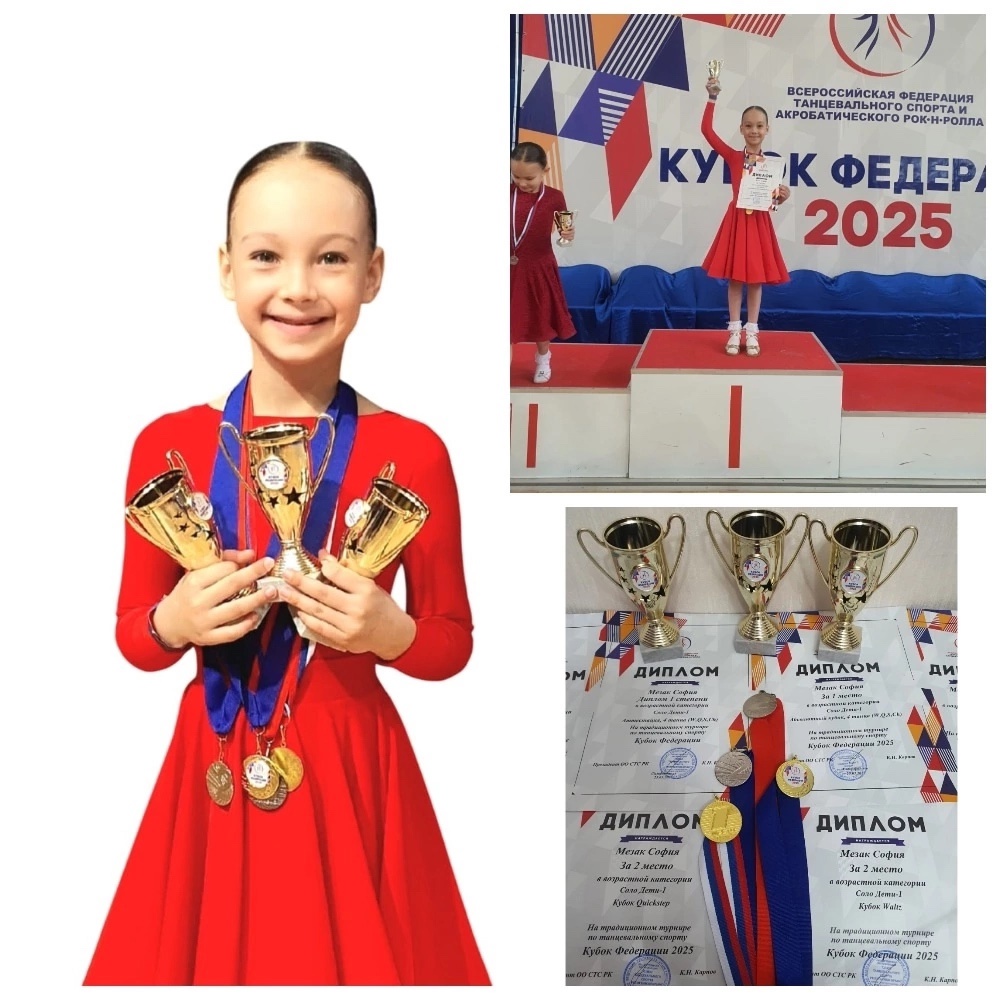 Учащаяся 1-в класса Мезак София приняла участие в Региональных соревнованиях по танцевальному спорту в г. Симферополь "КУБОК Федерации 2025" в возрастной категории Дети-1.