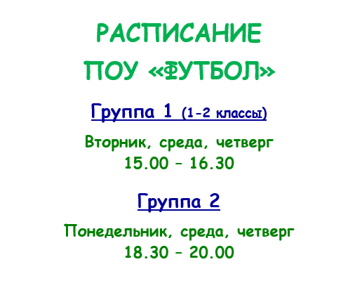 Тренировки проходят на современном спортивном поле по методикам подготовки детско-юношеских команд Российского футбольного союза.
