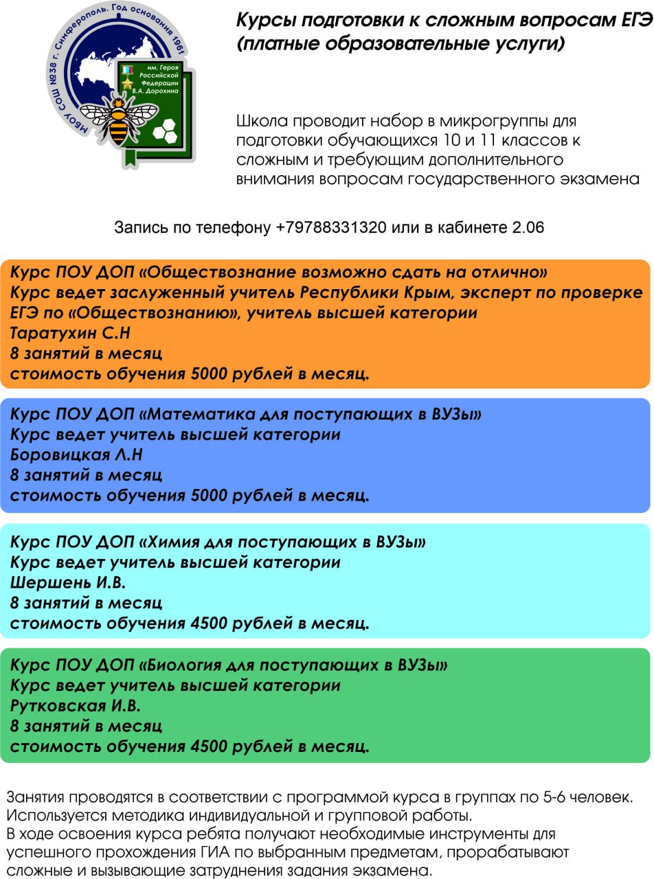 Муниципальное бюджетное общеобразовательное учреждение «Средняя общеобразовательная школа № 38 имени Героя Российской Федерации В.А. Дорохина» муниципального образования городской округ Симферополь Республики Крым