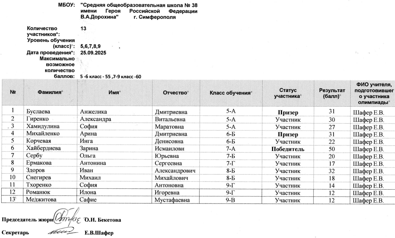 Муниципальное бюджетное общеобразовательное учреждение «Средняя общеобразовательная школа № 38 имени Героя Российской Федерации В.А. Дорохина» муниципального образования городской округ Симферополь Республики Крым