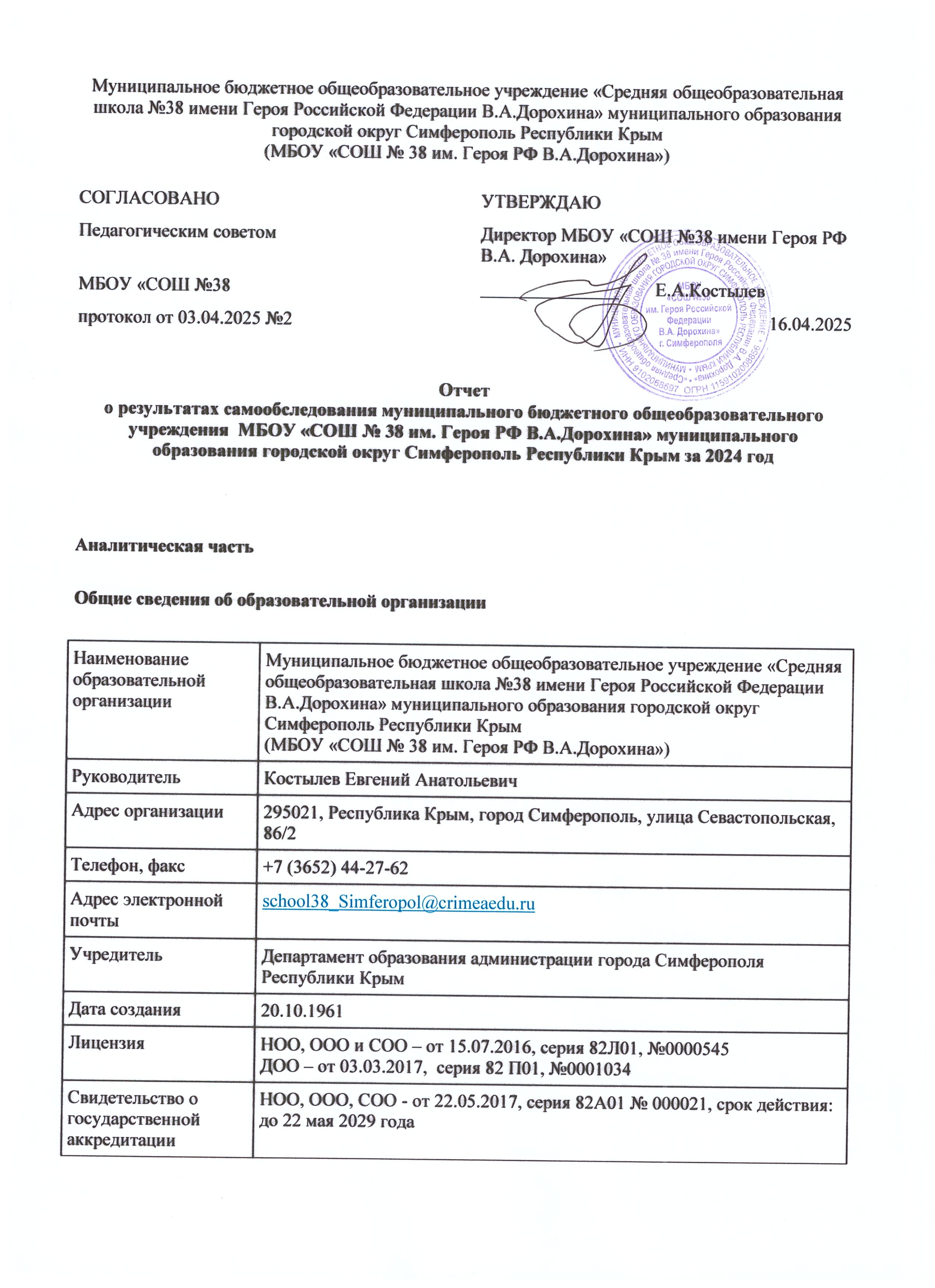 Муниципальное бюджетное общеобразовательное учреждение «Средняя общеобразовательная школа № 38 имени Героя Российской Федерации В.А. Дорохина» муниципального образования городской округ Симферополь Республики Крым